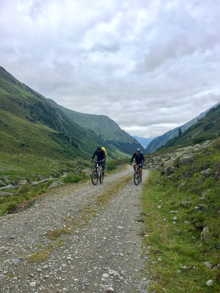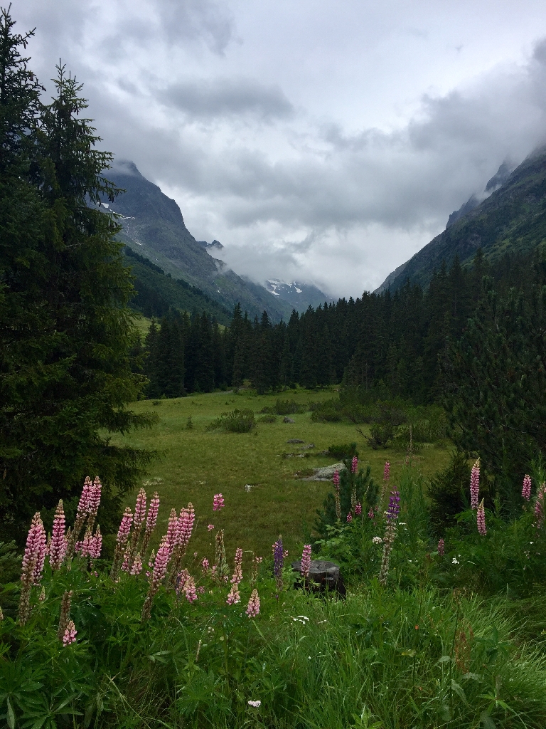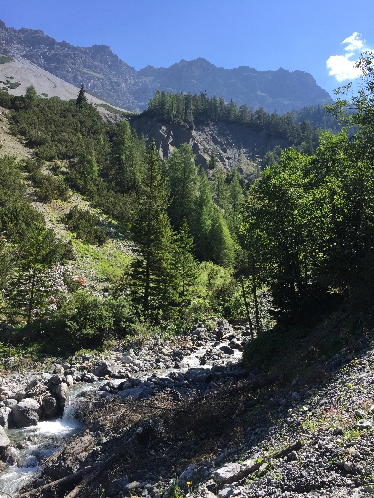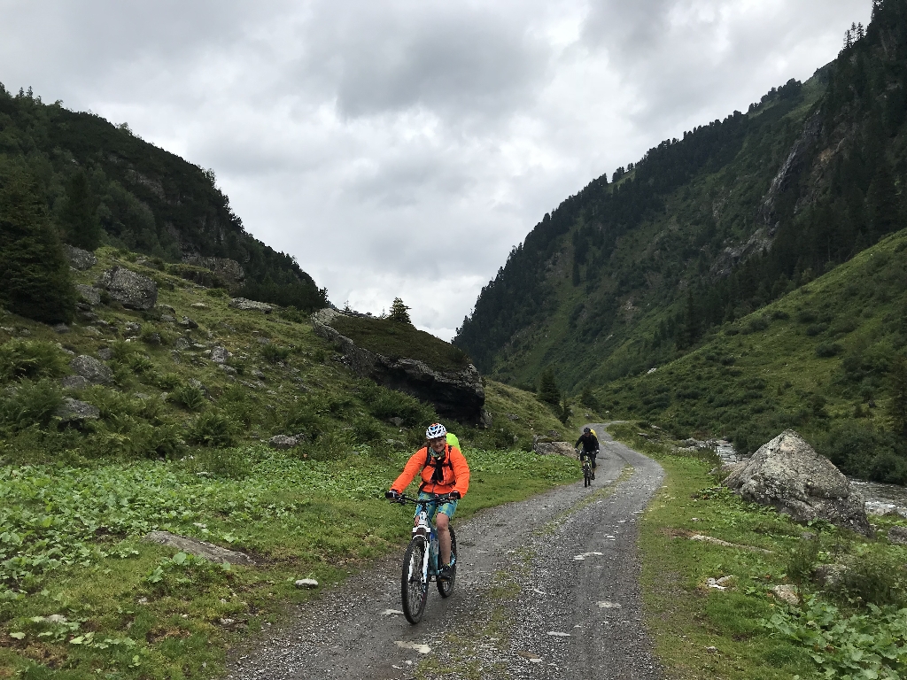 Erst gemäßigt bergauf, durchs Fimbertal.