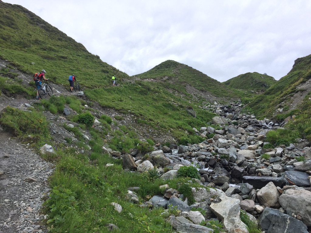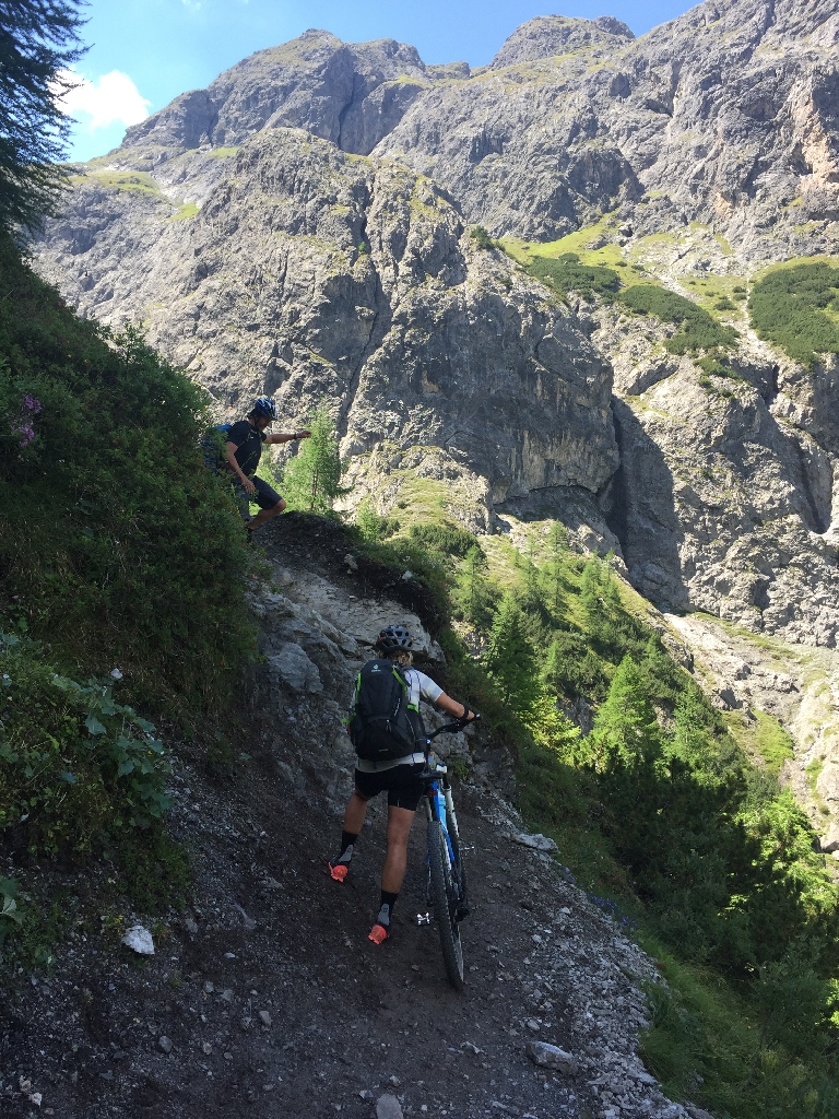 Im Gegensatz zu gestern sind heute richtig viele Leute unterwegs. Alle quälen sich das Verbellner Winterjöchl hoch, schiebend und ab und zu auch tragend. Wie froh bin ich, dass ich mir ein neues Rad mit Alurahmen gekauft hab ;-).