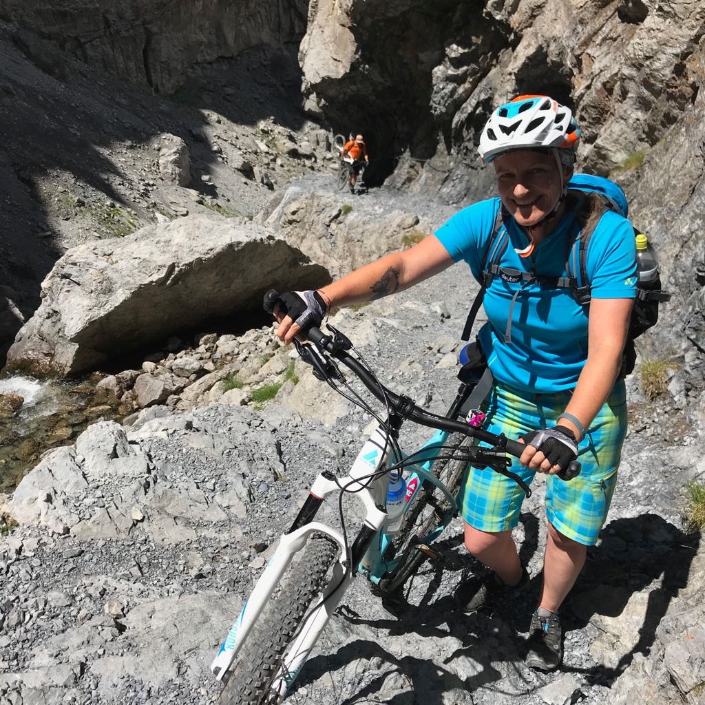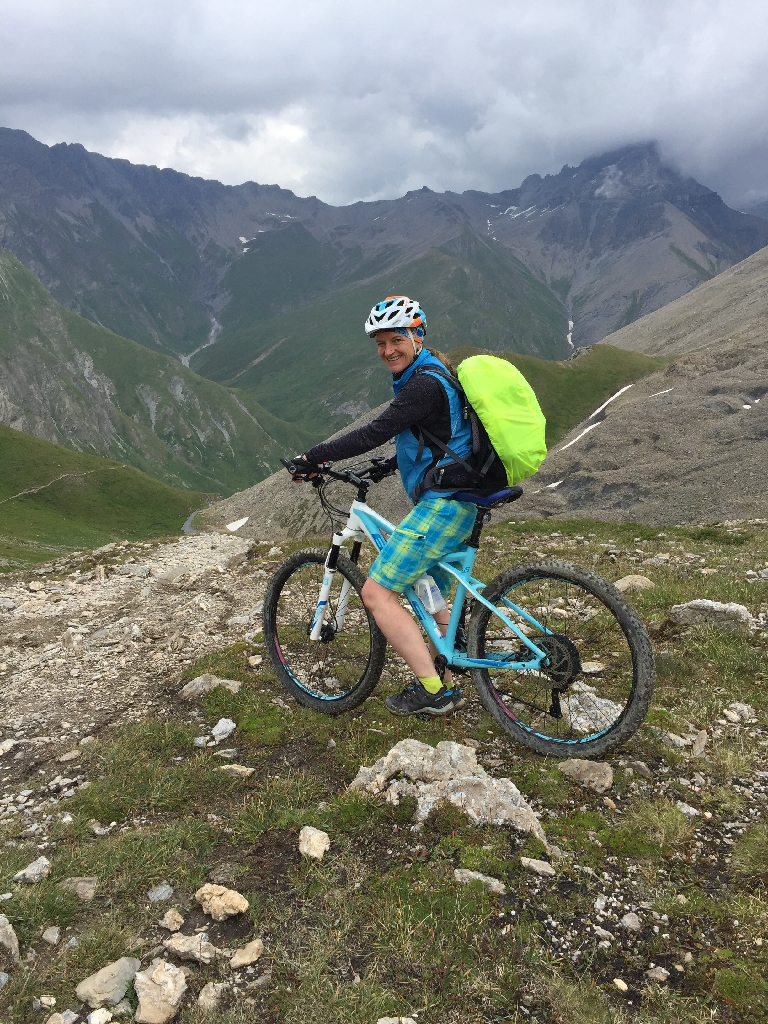 Die Strecke bergab ist für uns Mädels etwas zäh. Neben Kühen, die sich uns in den Weg stellen, ist der Weg auch nicht fahrbar, und so schieben wir die Räder wieder zwei Stunden bergab.