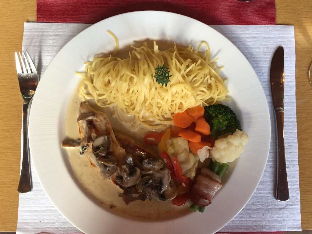 Das Abendessen ist wahnsinnig lecker und die Pension und Umgebung sind traumhaft! Alles sehr ruhig und urig. Heute Nacht schlafen wir sicher gut!