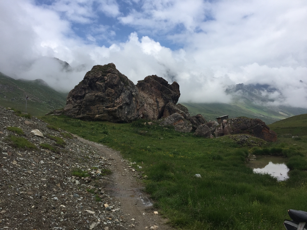 Die Spaghetti Ragout sind wichtig, um unsere Reserven wieder aufzufüllen. Einer unserer Gruppe nimmt noch ein Schlammbad im Weiher und danach geht’s an den Abstieg, erst schwierig, später fahrbar.