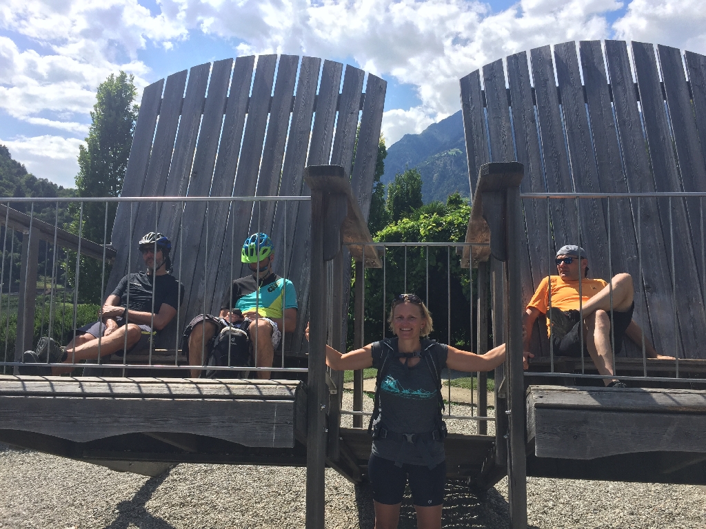 Ganz schön heiß – die Pausen sind nötig; außerdem haben wir genügend Zeit heute. Mittagspause in Naturns.