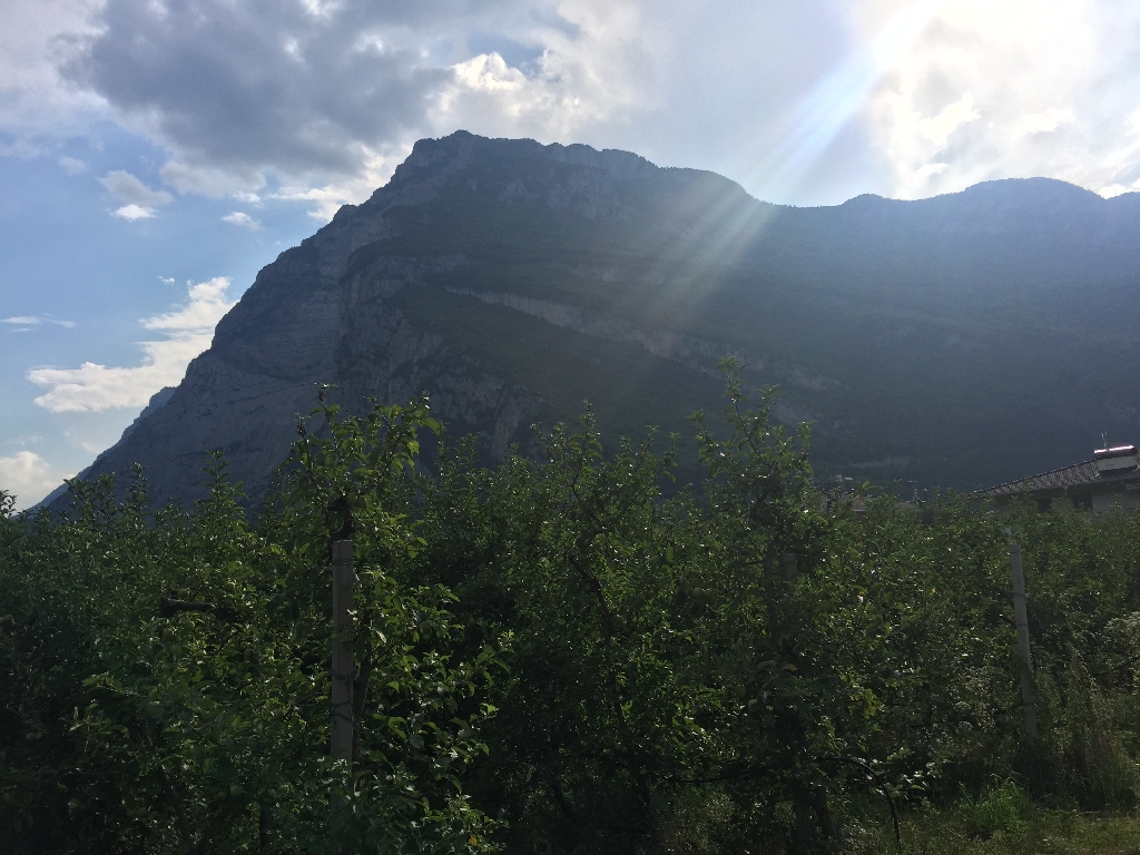 Am Nachmittag fahren wir an Obstplantagen vorbei und durch nette italienische Dörfchen bis oberhalb von Cles, wo wir einen tollen Blick auf den See genießen und ein Eis naschen, bevor der letzte Anstieg des Tages ansteht.