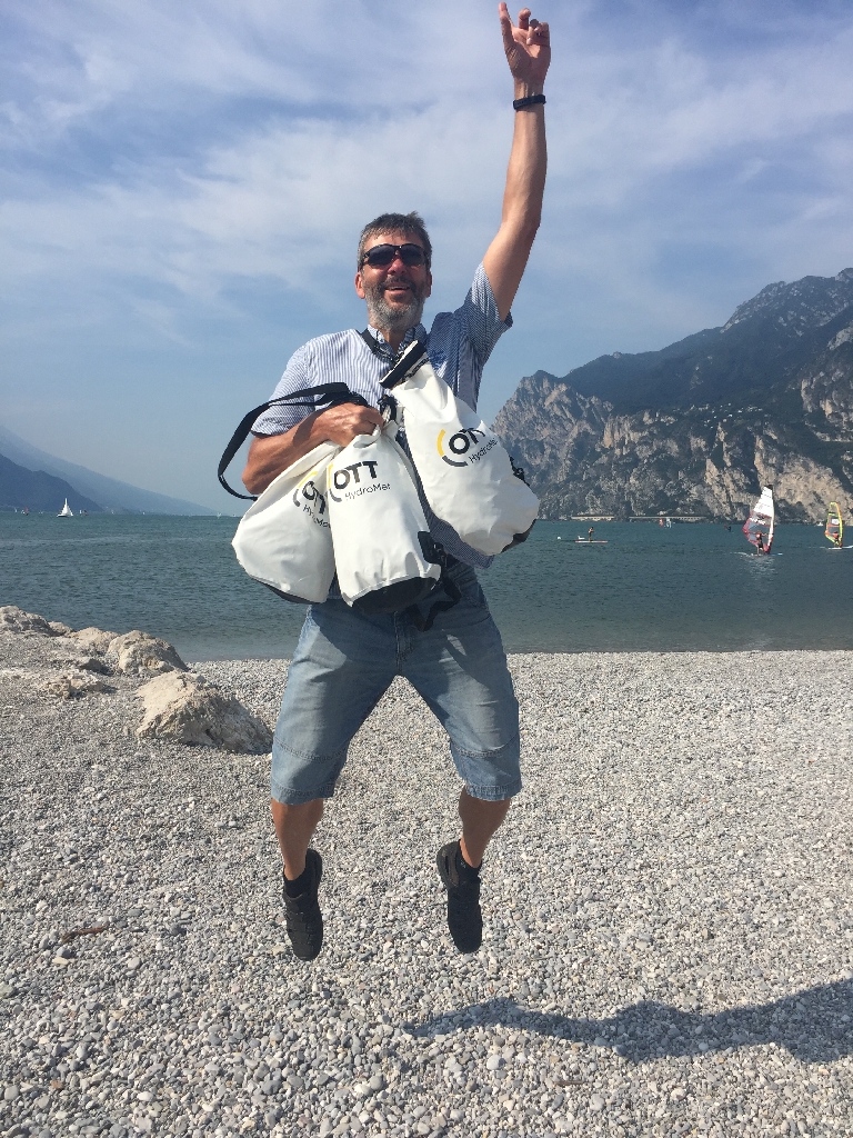 Total irre – wir sind am Gardasee angekommen. Aus eigener Kraft, ohne Pannen und Stürze! Aber es hat uns viel Schweiß gekostet, vor allem bei den heutigen Bergauffahrten auf der Straße, als die Sonne auf den Asphalt knallte. – Das Bad im See ist hart verdient, mit 85 km und ca. 1400 Hm.