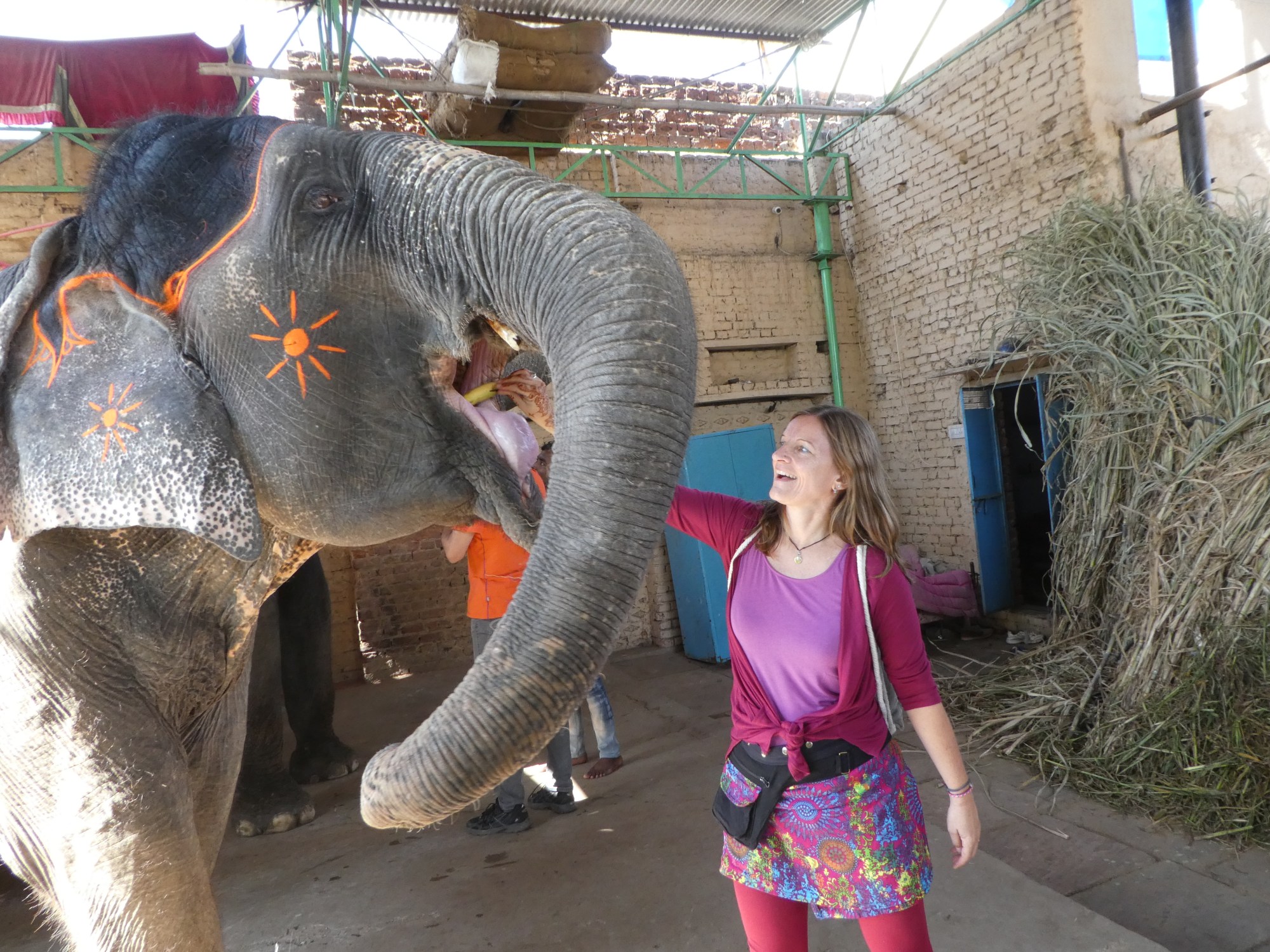 Erst muss ich mich schon überwinden, meine Hand mit der Banane in das Maul mit der riesigen, glitschigen Zunge der Elefantendame zu stecken, aber dann ist‘s total lustig.