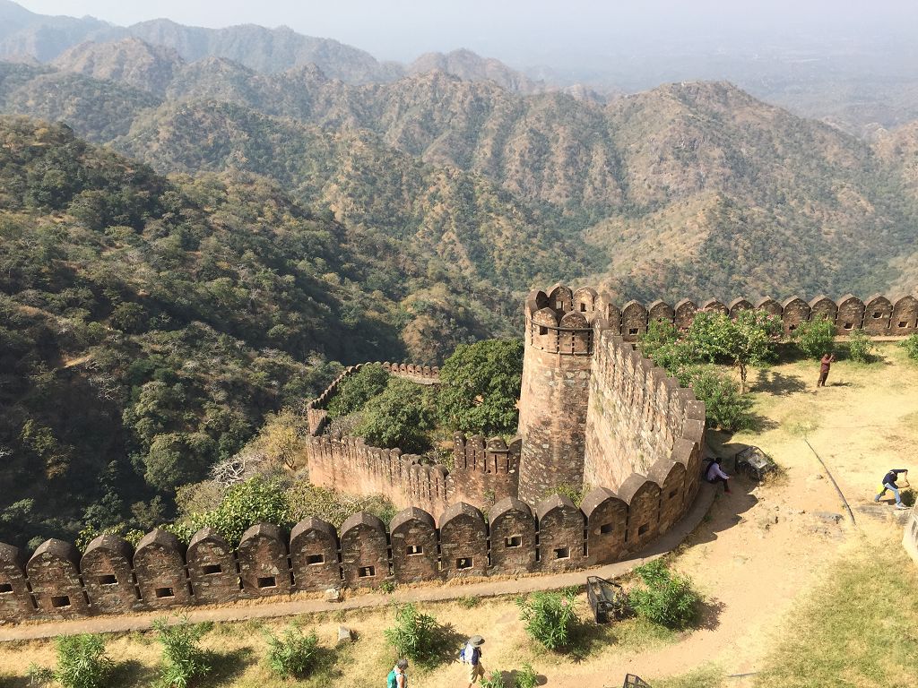 Auf einmal staut es sich, und wir kommen mit dem Auto nicht mehr weiter. Unglaublich viele Inder, vor allem Urlauber aus Gujarat, sind auf dem Weg zum Kumbhal Garh Fort, einer Befestigungsanlage mit beeindruckender Mauer. Wir laufen dann die 2 km zum Fort zu Fuß weiter.