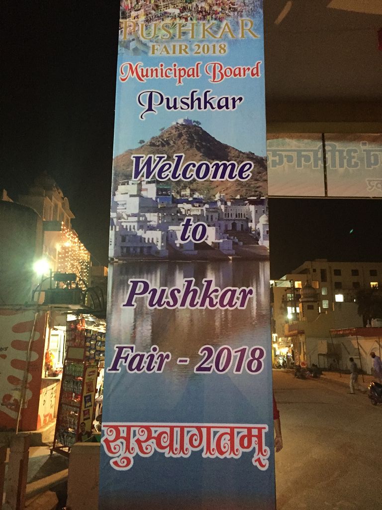 Dann müssen wir nur noch einen Hügel rauf und kommen 20 Minuten später in der Kleinstadt Pushkar an.