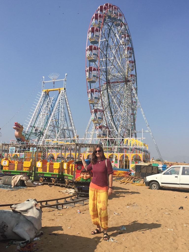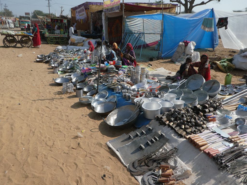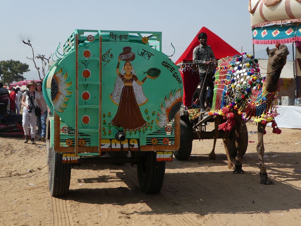 Wir machen noch einen kurzen Spaziergang am ausgetrockneten Kanal entlang zum See, wo wir bereits ein paar Yogis, geschmückte Kamele und andere Touris sehen, die anlässlich der jährlichen Feierlichkeiten am Heiligen See und des Kamelfestivals angereist sind. Morgen schauen wir uns das Treiben näher an.