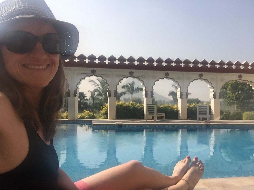 Super, dass wir mit der „Ranthambhore Villa“ eine tolle Unterkunft in der Kleinstadt Ranthambhore bekommen haben, mit Garten und sogar Pool, und so den Abend nach der langen Fahrt richtig genießen können.
