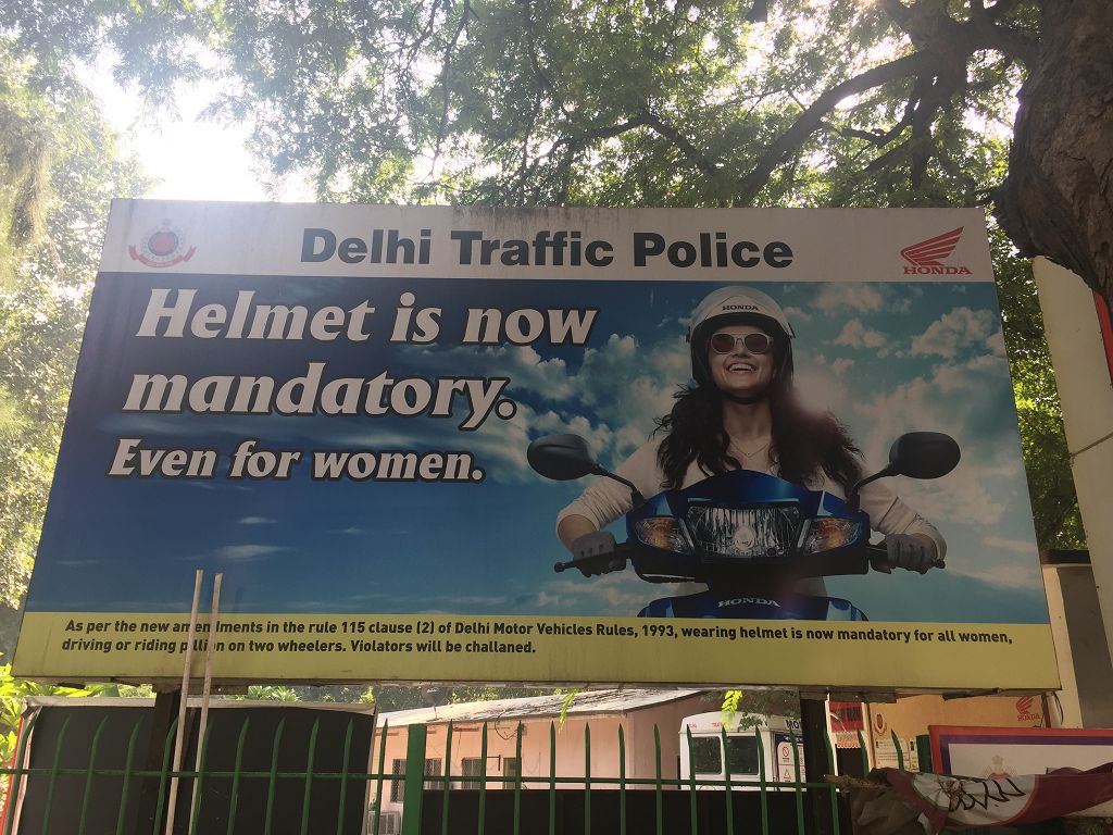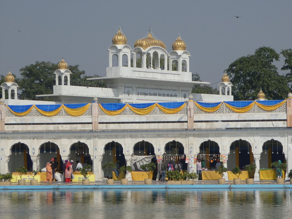 Wir fahren zunächst zum Connaught Place. Von dort geht‘s zu Fuß weiter zum Sikh Tempel Bangla Sahib, vorbei an einer Fahrschule (Helmpflicht, sogar für Frauen!) und an einem brennenden Haus – der Brand wird zum Glück relativ schnell gelöscht.