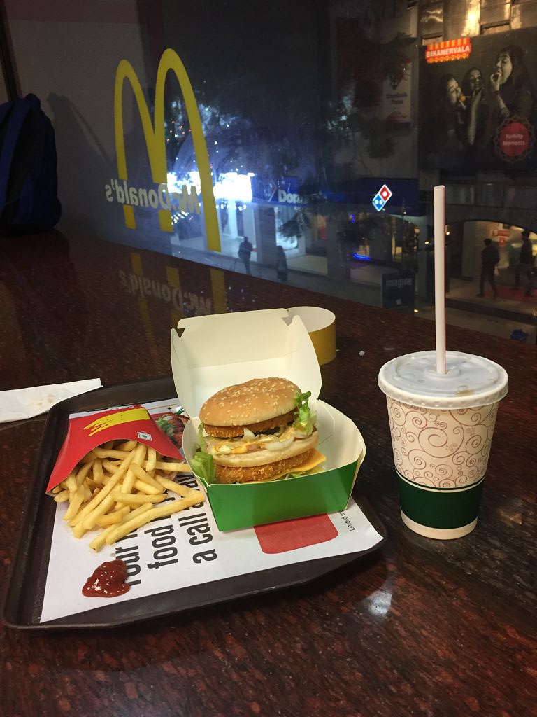 Wir laufen abends dafür noch von unserer Unterkauft aus in ca. 10 Minuten zum PVR Shopping Complex, schauen dort ein bisschen herum, trinken nachhaltigen Cappuccino und essen zum Abschluss einen vegetarischen Maharadscha Burger.