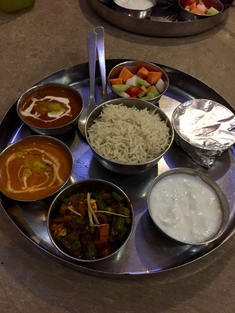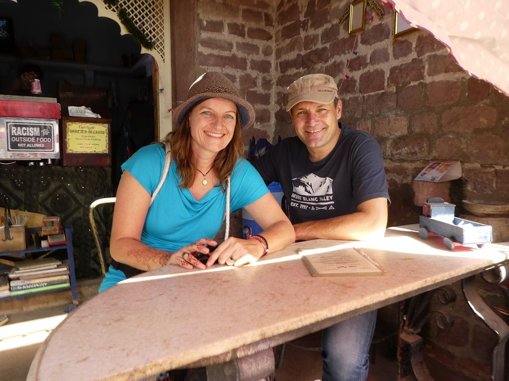 Das Land hat wirklich einiges an Schätzen zu bieten. Weiter geht‘s zum „Sagar Hotel“, das ein bisschen herrschaftlich anmutet und einen tollen Innenhof hat, in dem wir zu Abend essen; wieder mal ein leckeres Veg Thali. Das Essen ist immer so super, dass wir garantiert zunehmen, wenn uns nicht noch Montezumas Rache erwischt, was ich nicht hoffen will! Bisher ist – toi toi toi – alles gut gegangen.