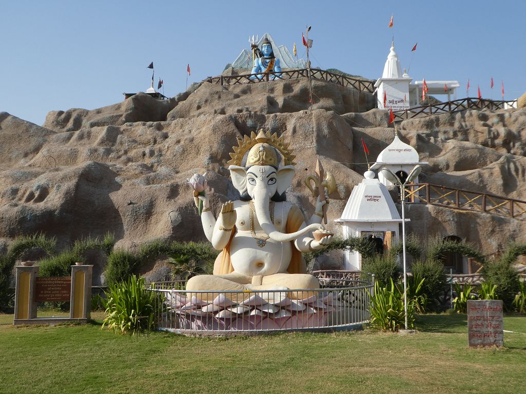 Dort besichtigen wir einen etwas schrägen Tempel der Jaina, die ihre eigene Weltanschauung in einem riesigen goldenen Gebilde dargestellt haben. Was es nicht alles gibt…