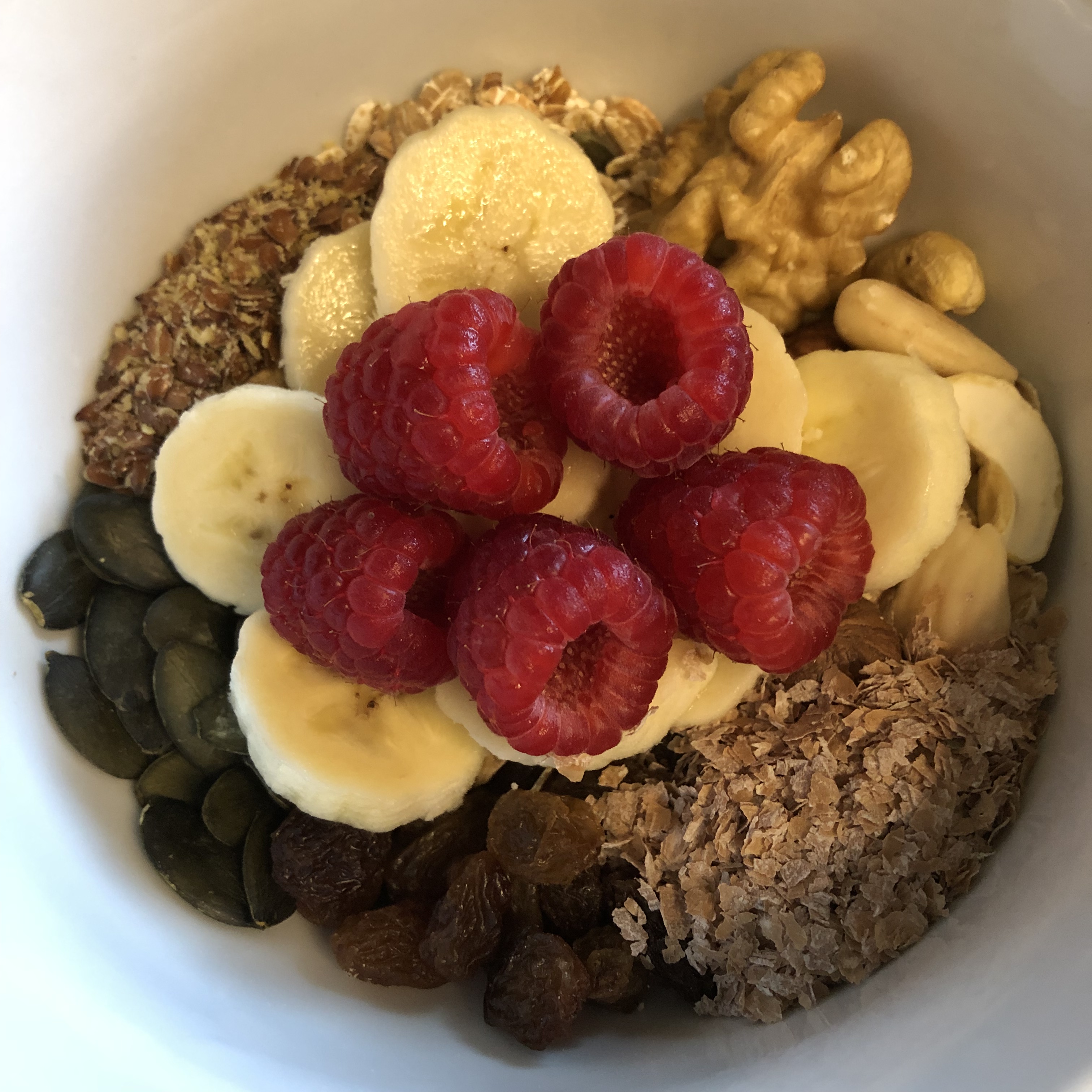 Mein Müsli zum Frühstück hab ich heute mit ein paar Himbeeren aufgepimt: