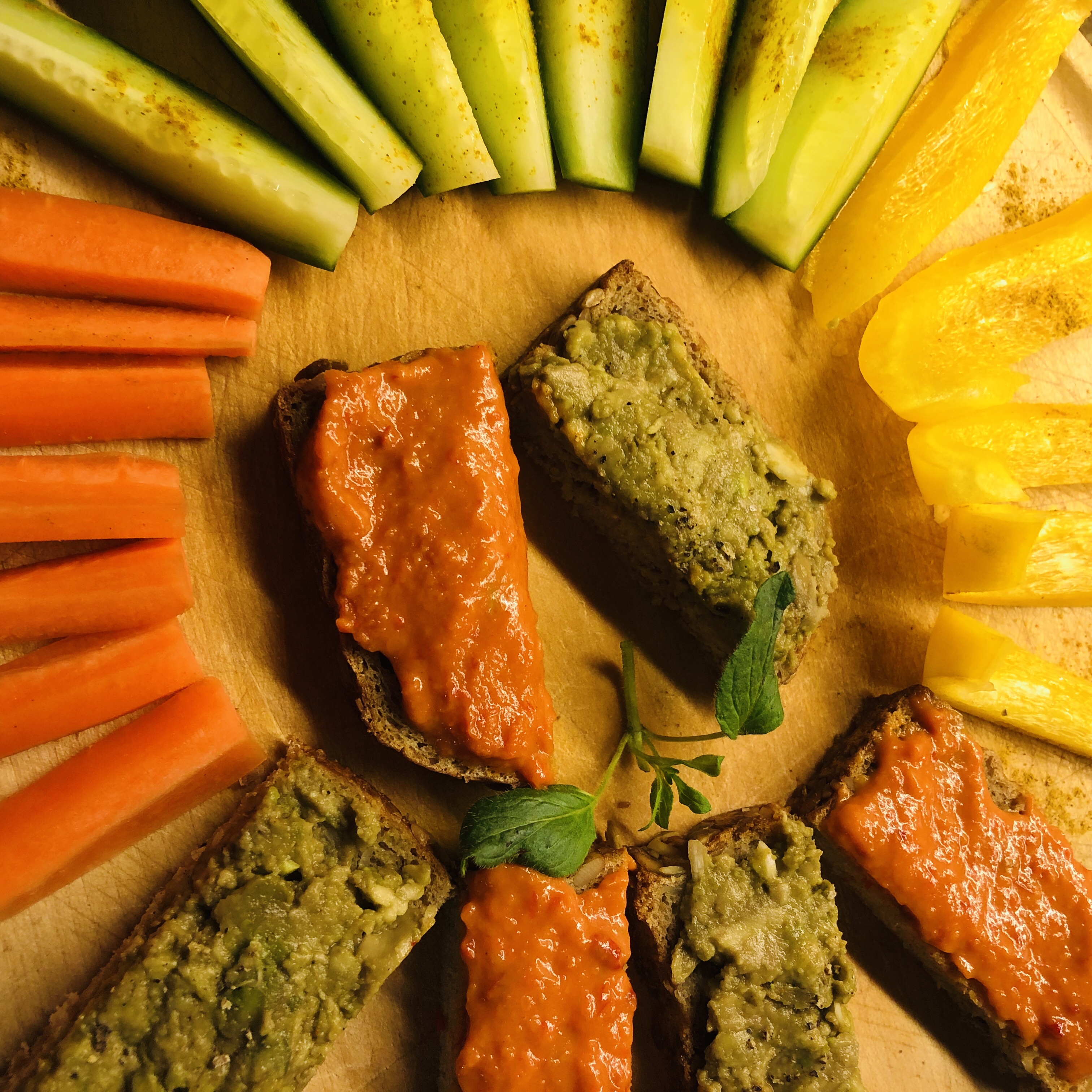 Danach ging’s zwei Stunden zum Sport (Aroha & Kaha). Ich war dann erst spät zuhause und hatte keine Lust mehr zu kochen. Deswegen hab ich mir zum Abschluss des Tages einfach eine feine Brotzeit aus Dinkelbrot mit Paprikaaufstrich und allerlei Gemüse gemacht.