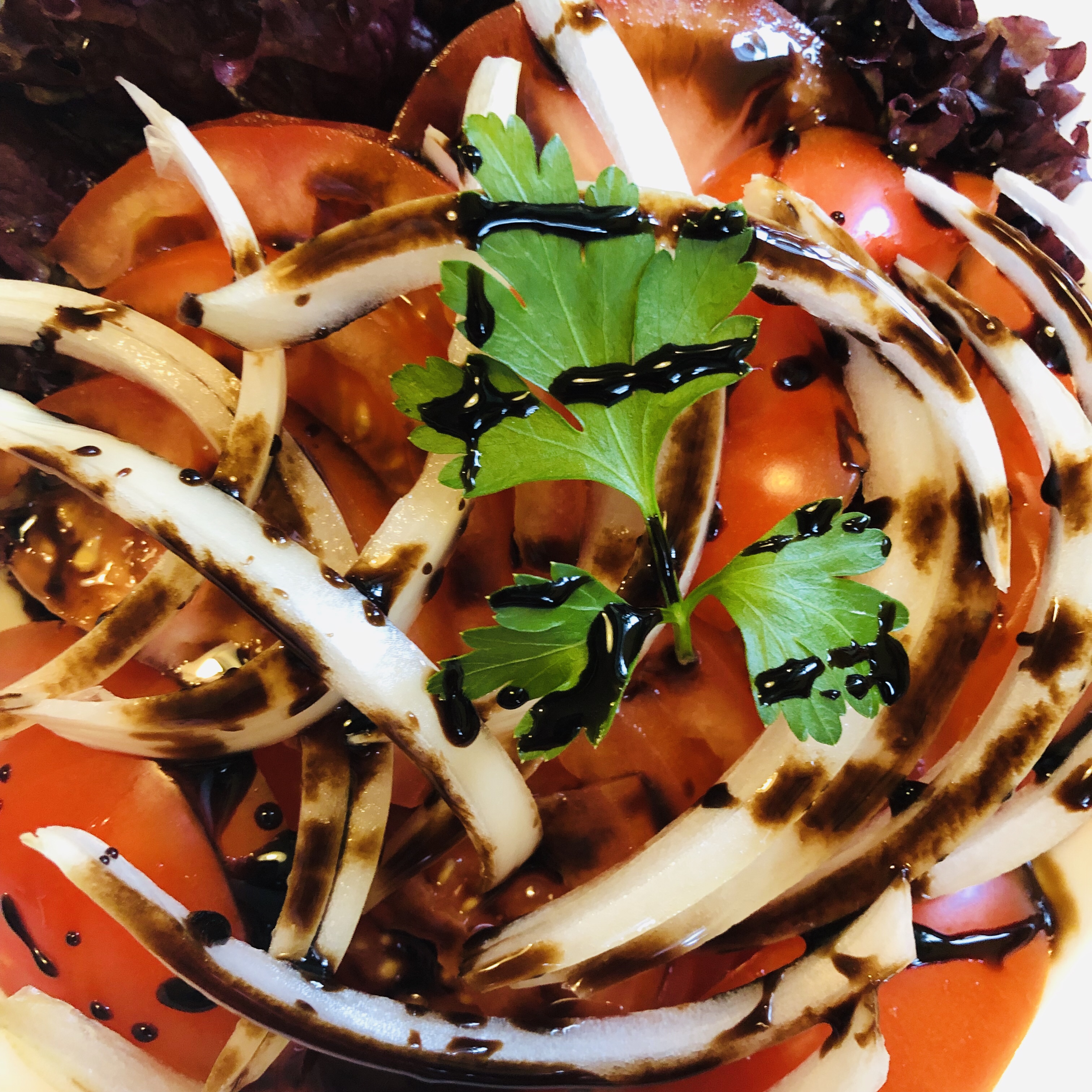 Dazu Tomatensoße mit frischem Oregano und gemischten Salat. Fertig!