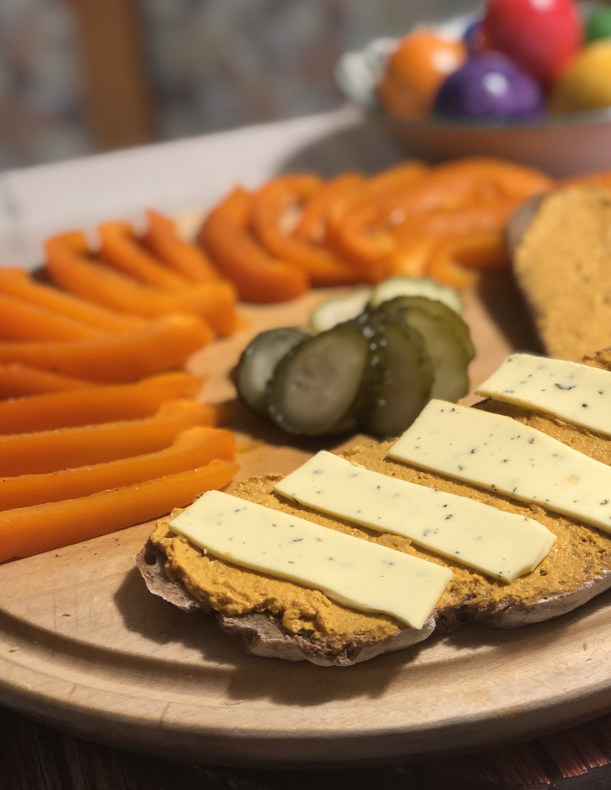 Zum Frühstück (und zur Brotzeit) hab ich veganen Scheibenkäse ausprobiert – aus Mandelerzeugnis. Na ja, ist keine geschmackliche Offenbarung, aber mit Kräuter-Tomate Brotaufstrich als Unterlage schmeckt sogar der 😃.