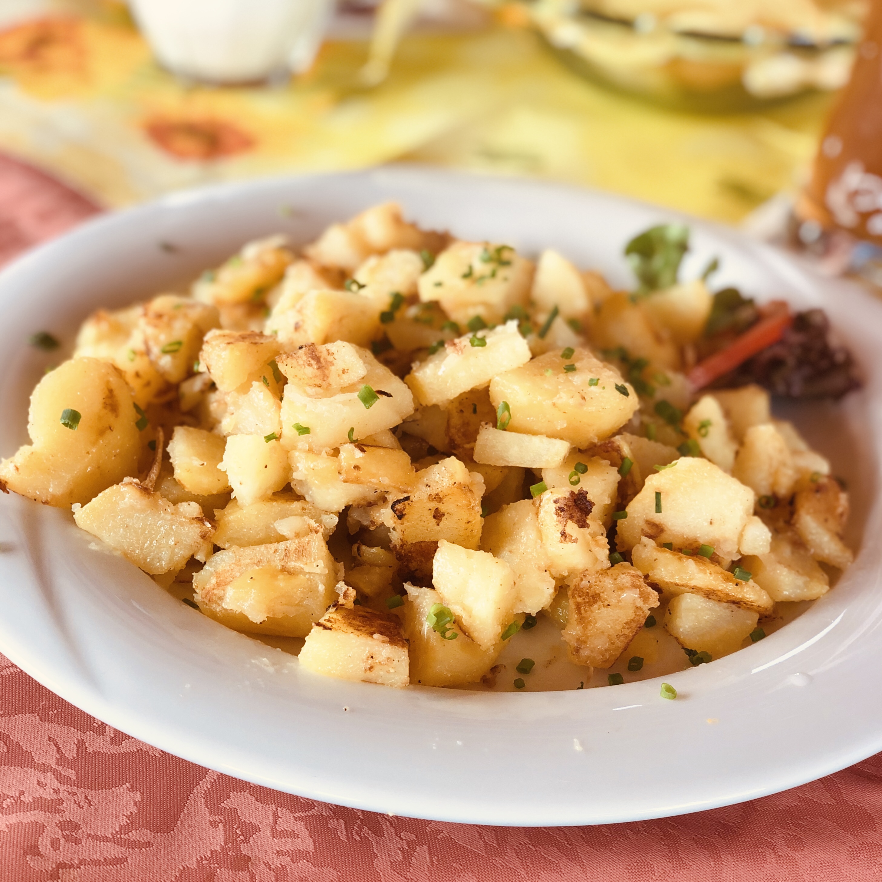 Heute Mittag hab ich mal die Variante Bratkartoffeln und kleiner gemischter Salat ausprobiert. Wunderbar!