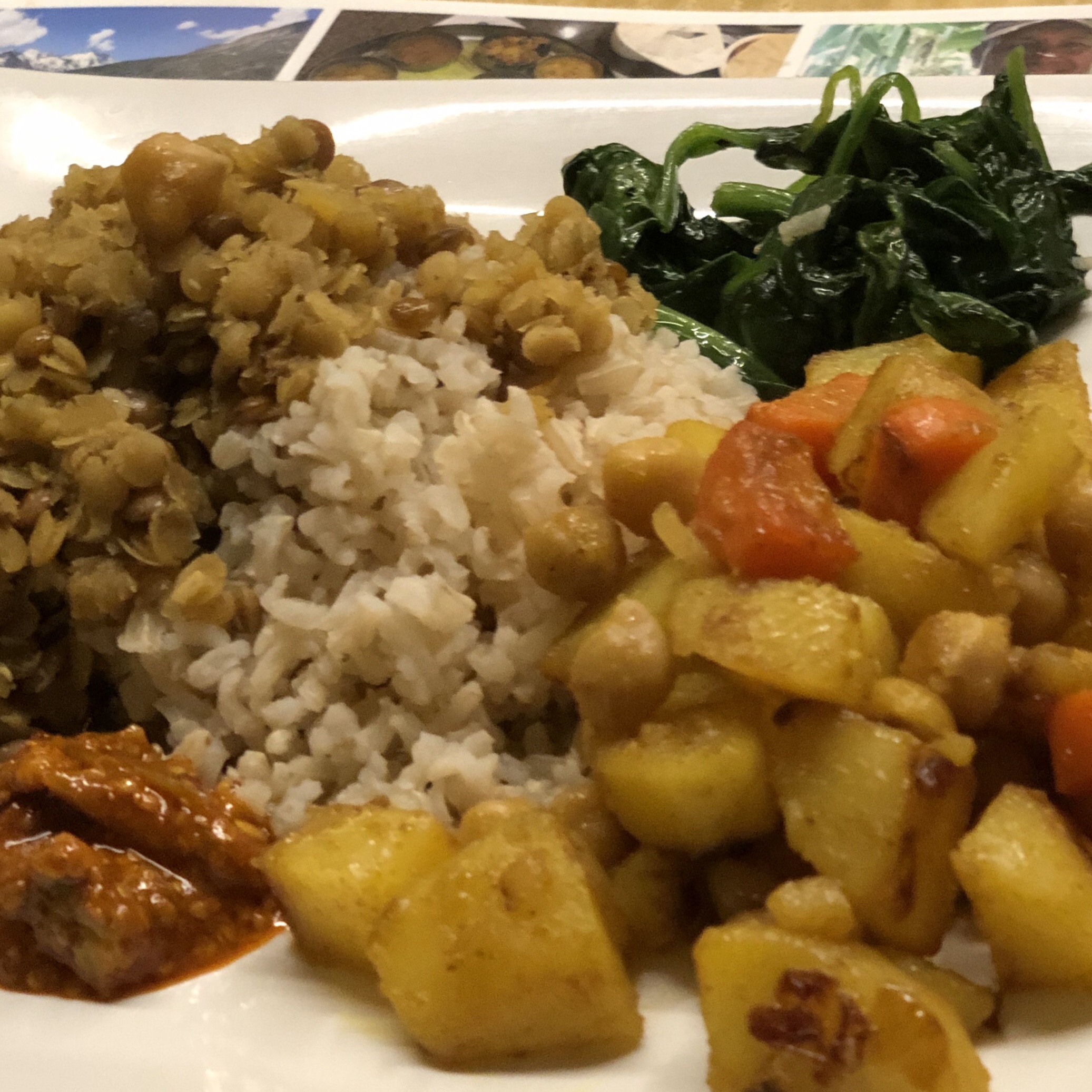 Abends haben wir nepalesisches Dhal Bat gekocht. Das ist immer sehr lecker und lässt die Erinnerungen an den schönen Nepalurlaub 2017 wieder aufleben. Reis, Linsen, Gemüse, Spinat und dazu scharfe Pickles – ist nicht nur optisch ein Gedicht.