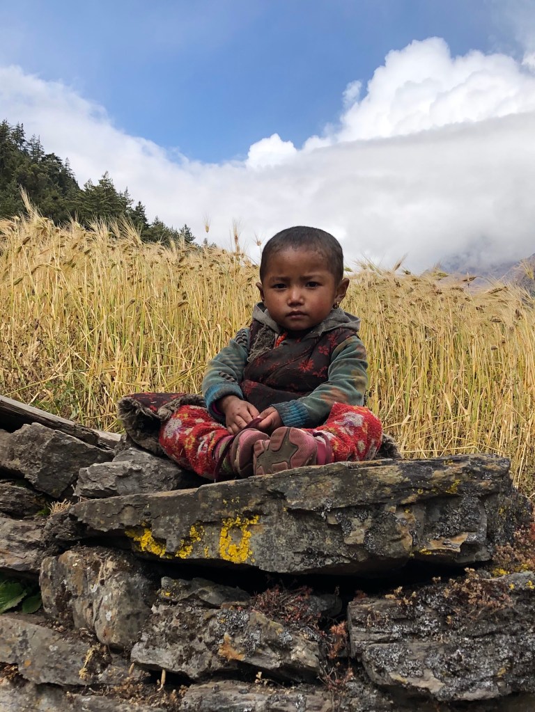 Gegen 15 Uhr kommen wir schon in Shyala an und beziehen zunächst als einzige Gäste eine am Ortsrand gelegene Unterkunft, „Nubri Shyala Guest House“, wo wir erst mal eine Runde Fußball spielen und dann in den zweifelhaften Genuss einer eiskalten Dusche kommen. Leider ist rundherum alles in Wolken.