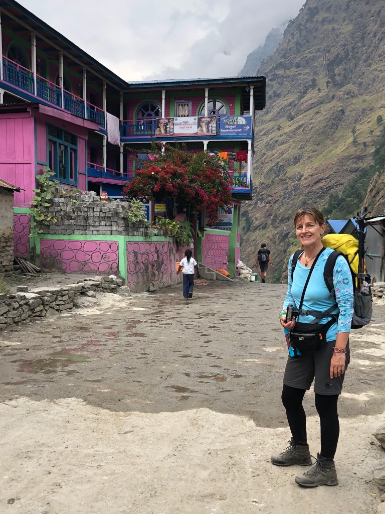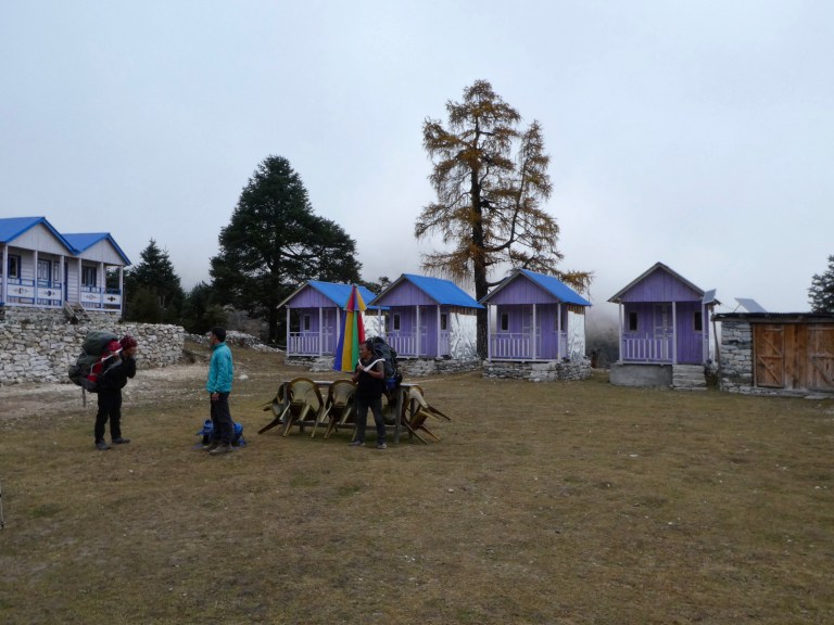 Wir verlassen zusammen mit vielen anderen Trekkern gleichzeitig die Unterkunft – heute war in der Lodge tatsächlich einiges los.