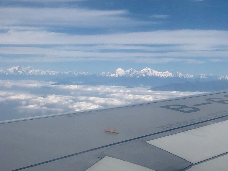 Weiter geht’s – in ca. 3,5 Stunden nach Kathmandu. Wir erblicken vom Flieger aus bereits die Ausläufer des Himalaya-Gebirges und die Vorfreude steigt.