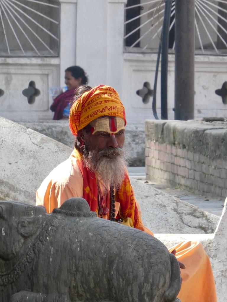 Zunächst steuern wir mit einem Taxi (nach kurzem Verhandeln mit dem Fahrer – das gehört schließlich dazu!) „Pashupatinath” an, die Tempelanlage der Hindus, wo die Toten am Bagmati-Fluss öffentlich verbrannt werden und wo sich gläubige Hindus, mehr oder weniger asketische Sadhus und Touristen nebst Affen und Kühen tummeln.