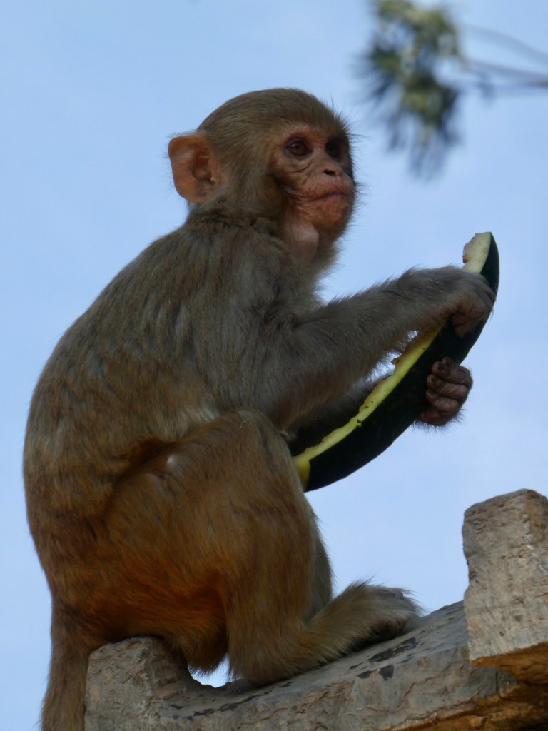 Am Nachmittag entdecken wir eine Gruppe von Hanuman-Languren-Affen im Wald. Schöne Tiere, teilweise ziemlich riesig.