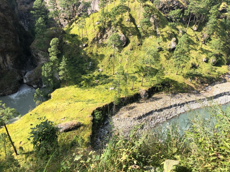 In Darapani treffen die Manaslu- und die Annapurna-Umrundung aufeinander. Das heißt, uns kommen ab jetzt einige Wanderer (meist ohne Guide und Träger) entgegen, die den Annapurna Circuit machen. Einerseits sind wir neidisch, dass die alle noch eine schöne Tour vor sich haben, und wir fast durch sind. Andererseits bin ich für meinen Teil doch inzwischen ziemlich k.o. Meine Energie hab ich irgendwo auf dem langen Runterweg gestern verloren.