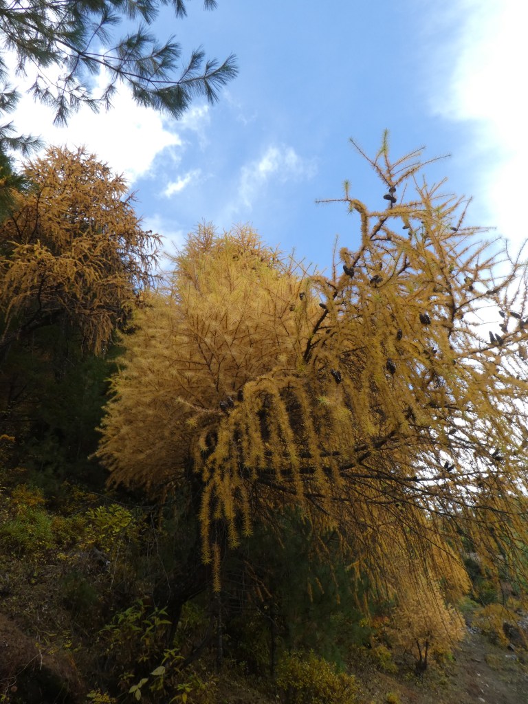 Die gelb gefärbten Nadeln der Lärchenbäume sind faszinierend, wechseln sich mit fast mystischen Wäldchen ab. Sicherlich wäre im Frühjahr alles noch bunter, aber dieses interessante Farbenspiel zeigt sich nur im Herbst!