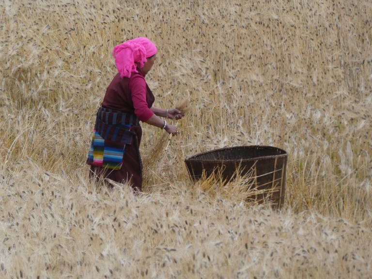 Wir sehen viele ländliche Betriebe, die noch traditionell bewirtschaftet werden, große Weizenfelder, Beete für Kartoffel-, Kohl-, Karottenanbau etc. – und fleißige Arbeiterinnen.