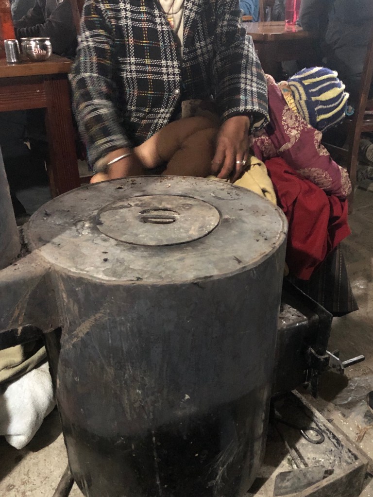 Später wärmen wir uns mit Tee, Dhal Bhat und Bier vor dem Ofen auf. Neben einer Truppe nepalesischer Trekker sind wir die einzigen Gäste.