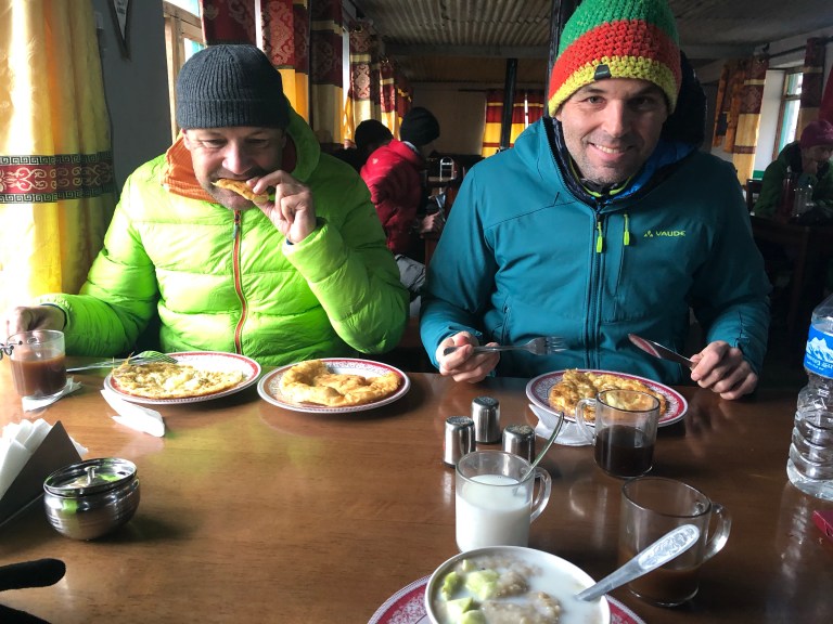 Wieder eine lange Nacht (so viel wie hier schlaf ich sonst bei Weitem nicht!). Aber die Energie brauchen wir schon, um die Kälte und das Gehen in der Höhe auszuhalten! Toi toi toi sind wir alle fit – bisher hat keiner größere gesundheitliche Probleme (außer kleinere Erkältungsbeschwerden). So kann es weitergehen, insbesondere jetzt, kurz vor dem Höhepunkt der Tour!