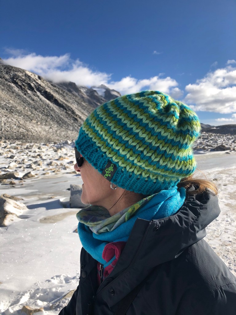 Gegen 6:30 Uhr gehts weiter. Es ist noch immer ziemlich kalt (in den Wasserflaschen gefriert das Wasser), aber zum Glück hat es noch keinen Wind! Sobald die Sonne über die Bergspitzen kommt, wird es endlich wärmer.