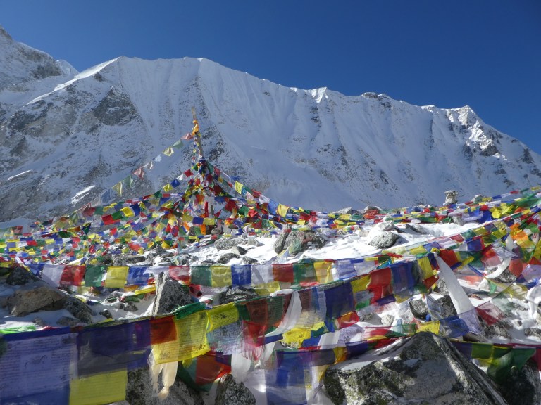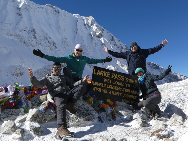 Die Bergriesen, die uns umringen, sind umwerfend und wir sind voller Vorfreude auf den Pass. Die Strecke zieht sich allerdings, und so sind wir erst nach gut vier Stunden am „Larke Pass“ auf 5106 m, dem Höhepunkt unserer Tour.