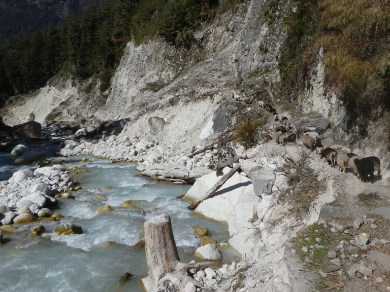 Beeindruckend, aber man muss bei jedem Schritt wachsam sein! Auch weil einem ständig schwer beladene Mulikarawanen entgegenkommen (Faustregel: immer auf der Bergseite ausweichen!).