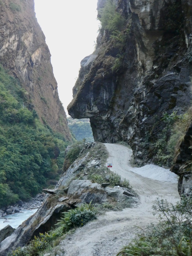 Die Wanderung heute geht zunächst auf der holprigen (und höchst steinschlaggefährdeten) Fahrstraße entlang, die bis Manang führt.