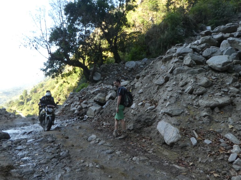 Danach sind es nur noch etwa 1,5 Stunden, an schönen Reisfeldern und Bambusbäumen vorbei (und Schülerinnen mit tollem langen Haar) bis wir Nadgi erreichen, wo ein sehr rudimentär ausgestatteter Bus auf uns wartet und wo wir sofort die 1,5-stündige Busfahrt nach Besisahar antreten können.