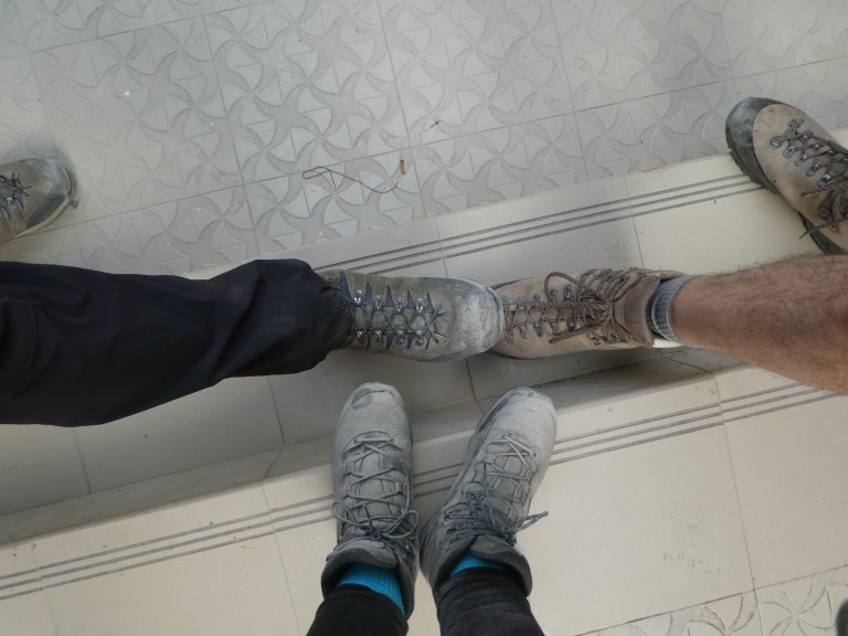Wir sind dennoch der Meinung: „Besser schlecht gefahren, als gut gelaufen!“ Inzwischen merkt man die Knochen doch ganz schön. Und unsere Schuhe zeigen auch deutliche Spuren…