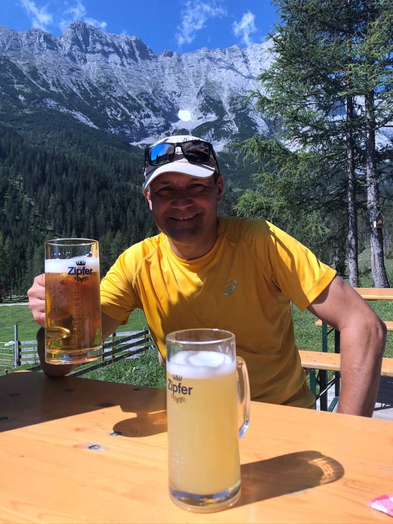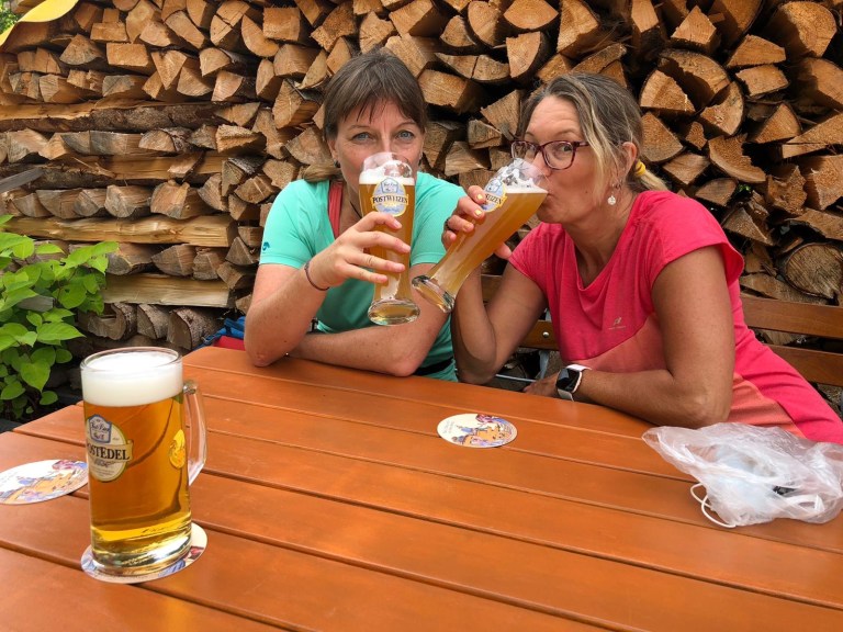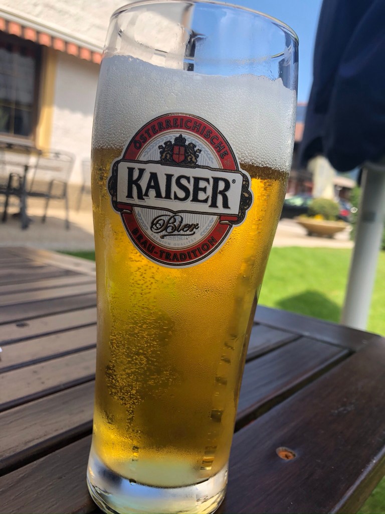 In Reutte angekommen werden unsere Gebete erhört. Prost!