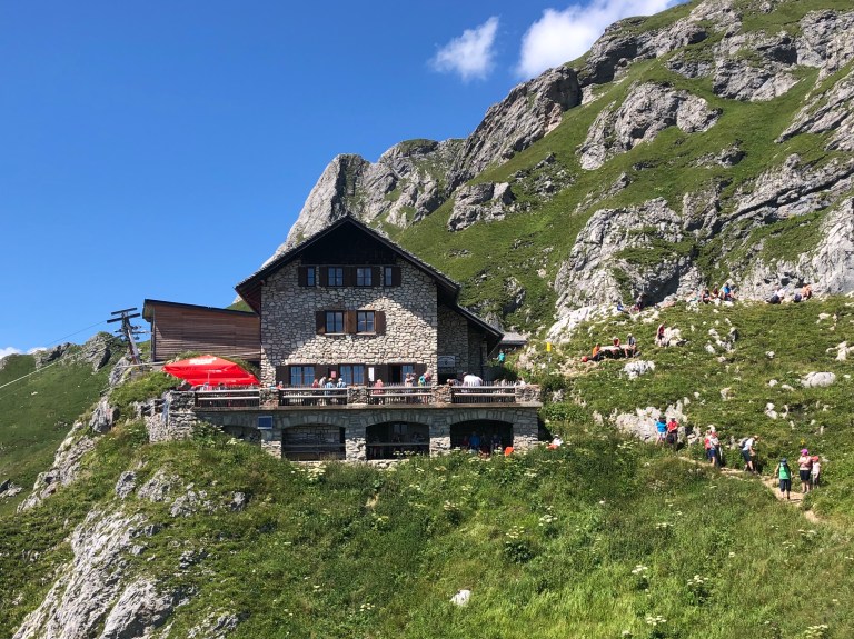 Weiter zum Füssener Jöchle, und dann bei traumhaftem Panorama zur „Otto-Mayr-Hütte“ – zum wohlverdienten Frühshoppen mit Radler und Apfelstrudel (ohne Rosinen!).