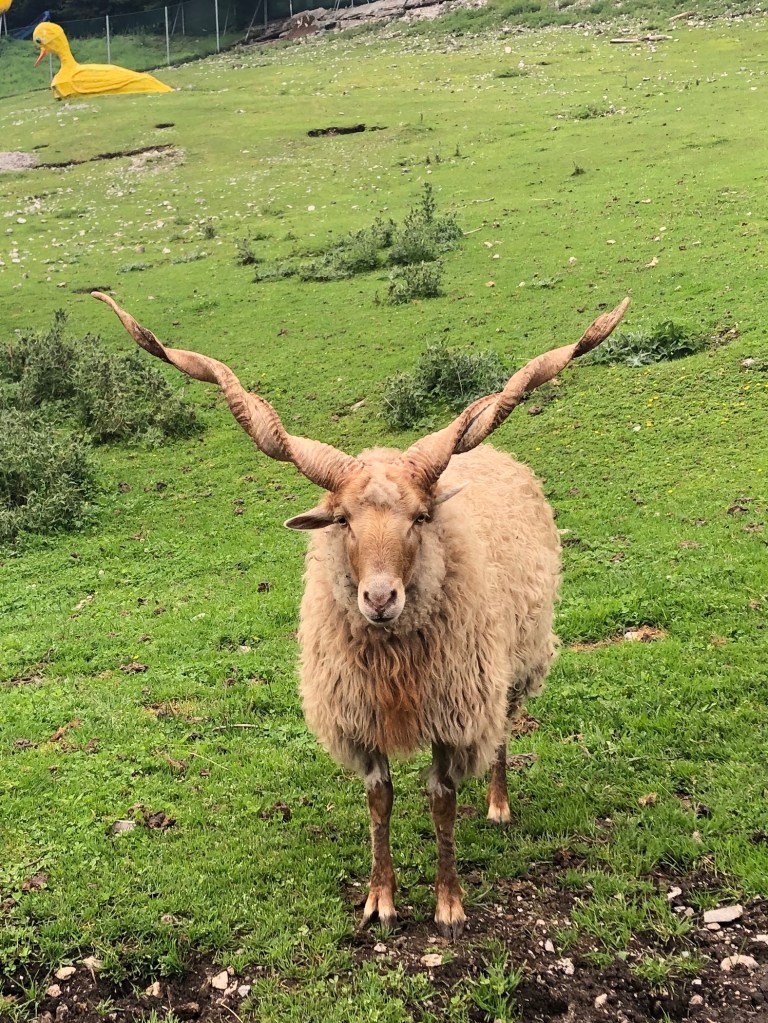 Tierische Begegnungen: „Alkali-Schafe“ (wendlerscher Ausdruck für Alpacas), eine Gemse (eher ungewöhnlich – normalerweise trifft man sie eher in kleinen Gruppen an)