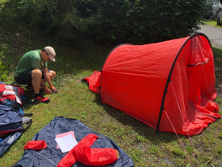 Zum Teil müssen wir zwischendurch Bus oder Bahn nehmen – sonst schaffen wir die über 500 km nicht in 20 Tagen. Es gilt ja auch ein paar nicht unerhebliche Höhenmeter zu überwinden. Soweit der Plan (Komoot hilft bei der Ausarbeitung der Tour im Detail). Der Rucksack ist gepackt (ca. 10 kg ohne Getränke und Verpflegung). Ein Zelt sowie Schlafsäcke und Luftmatratzen für alle Fälle sind auch mit dabei. Das Abenteuer kann losgehen!