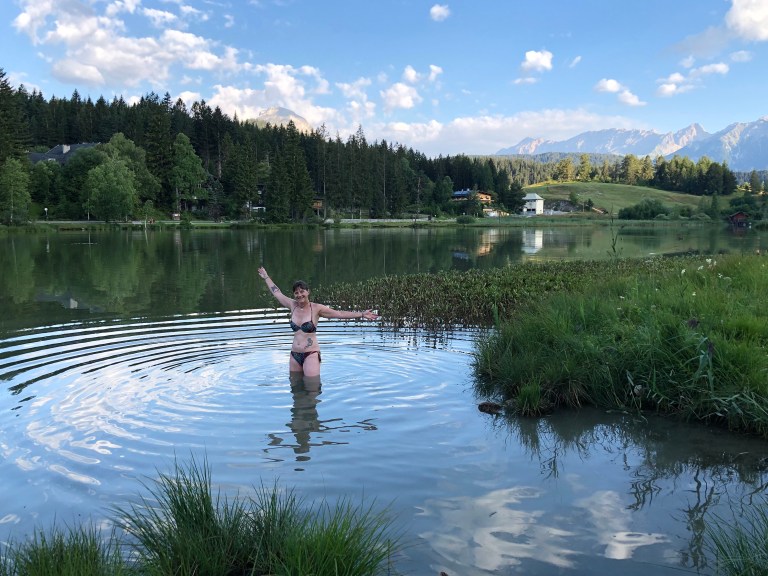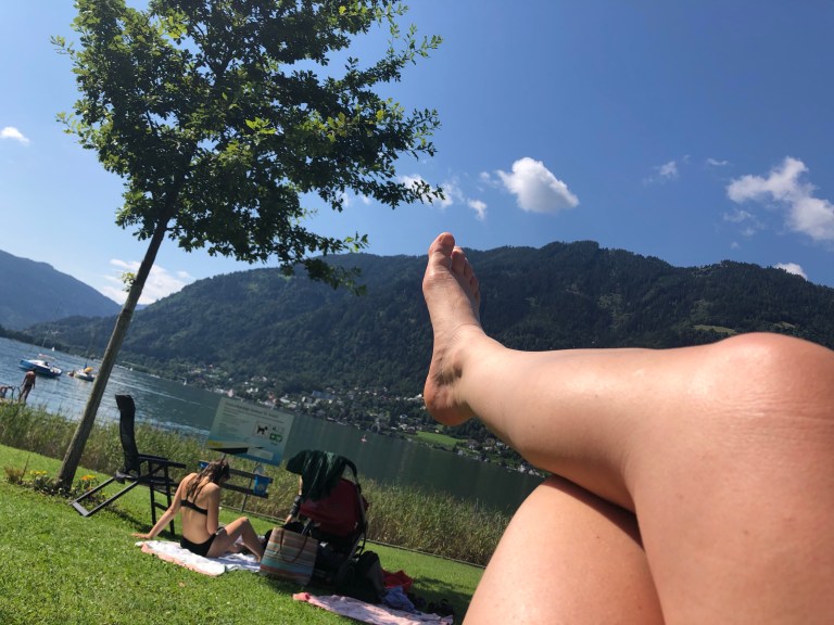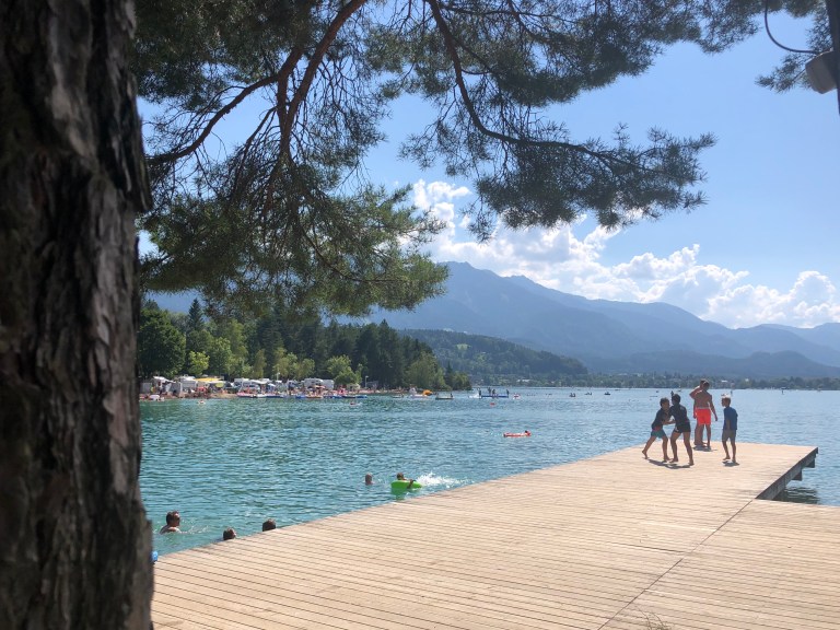 Der amerikanische Außenminister, der gerade in Slowenien ist, ist soeben mit etwa 20 Begleitfahrzeugen oberhalb des Burg-Strandbads vorbeigefahren und hakt offenbar einen Termin nach dem anderen ab (insgesamt sehen wir die Karawane an dem Tag dreimal). Uns fällt dazu lediglich ein: „Schee bled – der Mr Pompeo kommt an so einen wunderschönen Ort und kann ihn nicht genießen!“