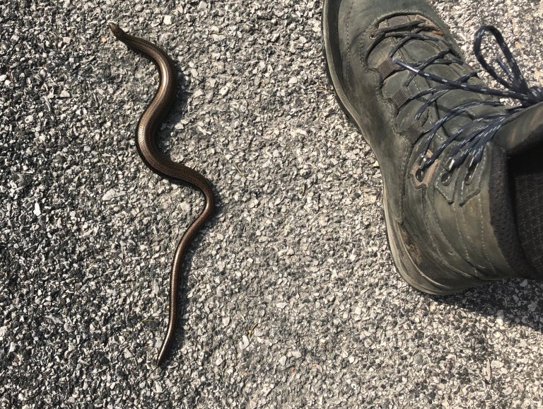 Tierische Begegnungen: wieder eine Blindschleiche – diesmal eine nicht fotoscheue und gar nicht so kleine!