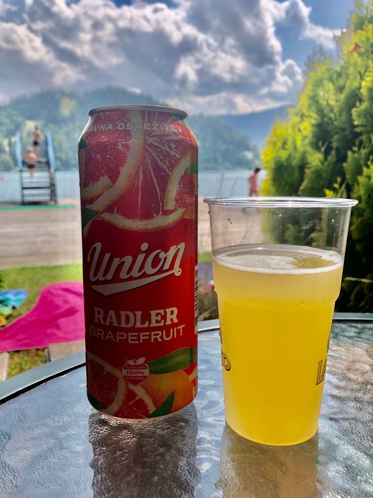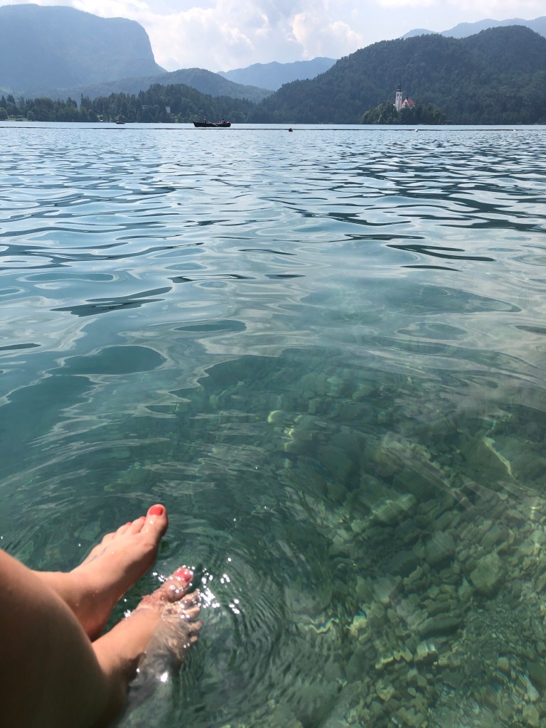 Am nächsten Tag brauchen wir dringend eine Erfrischung. In 1 1/2 Stunden fahren wir mit dem Zug (zusammen mit einer Gruppe älterer Damen, die wohl schon einen gezwitschert haben und ihre Gesangskünste zum Besten geben) nach Bled.
