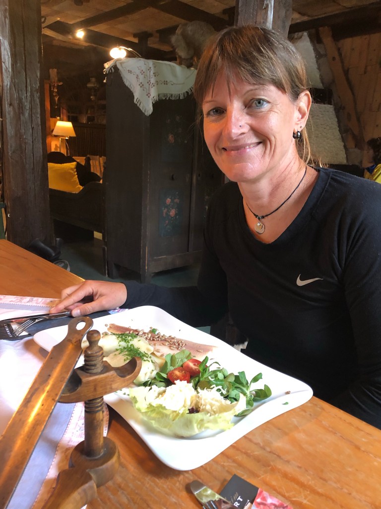 In Ferlach geben wir unsere Räder beim Tourismusbüro ab und trinken noch was im Schlossparkcafé. Danach Stärkung mit Backhendlsalat und weiter geht’s zu Fuß Richtung Loiblpass.