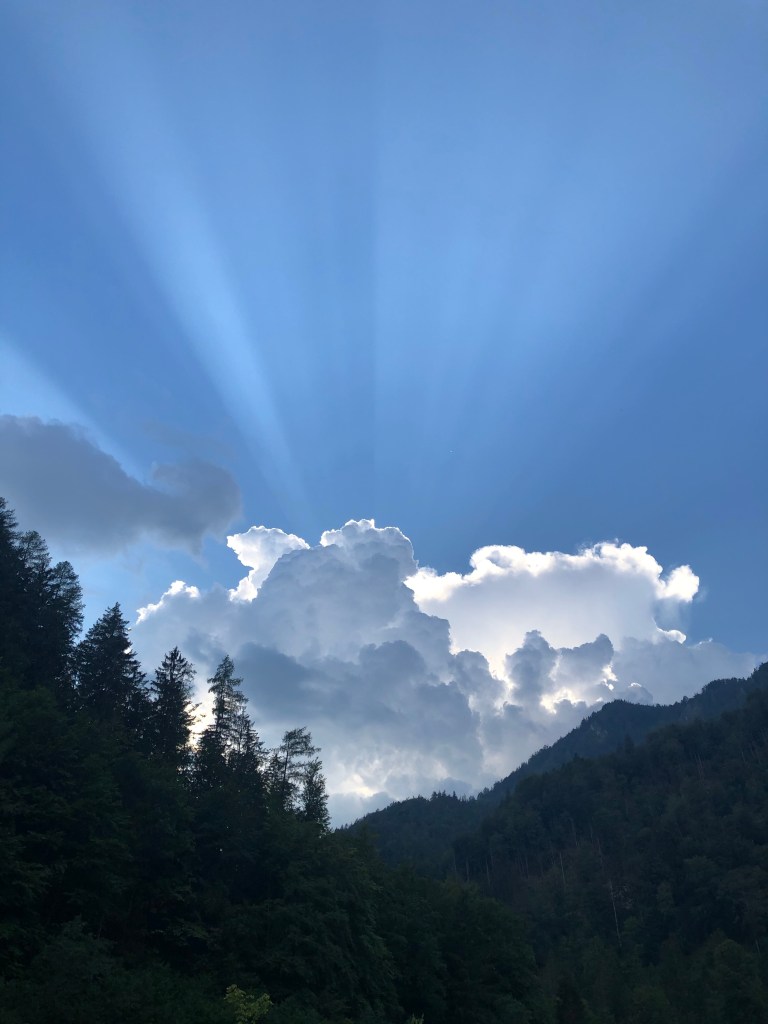 Wetter: optimal – kurz nachdem wir am Nachmittag im Hotel in Reutte-Lechaschau angekommen sind, bricht ein kleines Unwetter mit Starkregen los, was glücklicherweise bald vorbei ist und uns am Abend einen schönen Regenbogen beschert