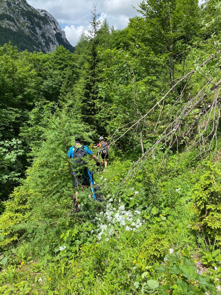 Ohne Machete oder Kettensäge ist es schwierig, aber mit vereinten Kräften schaffen wir es nach einer gefühlten Stunde uns aus dem Dickicht zu befreien und wieder auf einen zivilisierten Weg zu gelangen, um hinterher auf dem ebenfalls nicht so gut zu befahrenden Alpe Adria Trail zu landen.