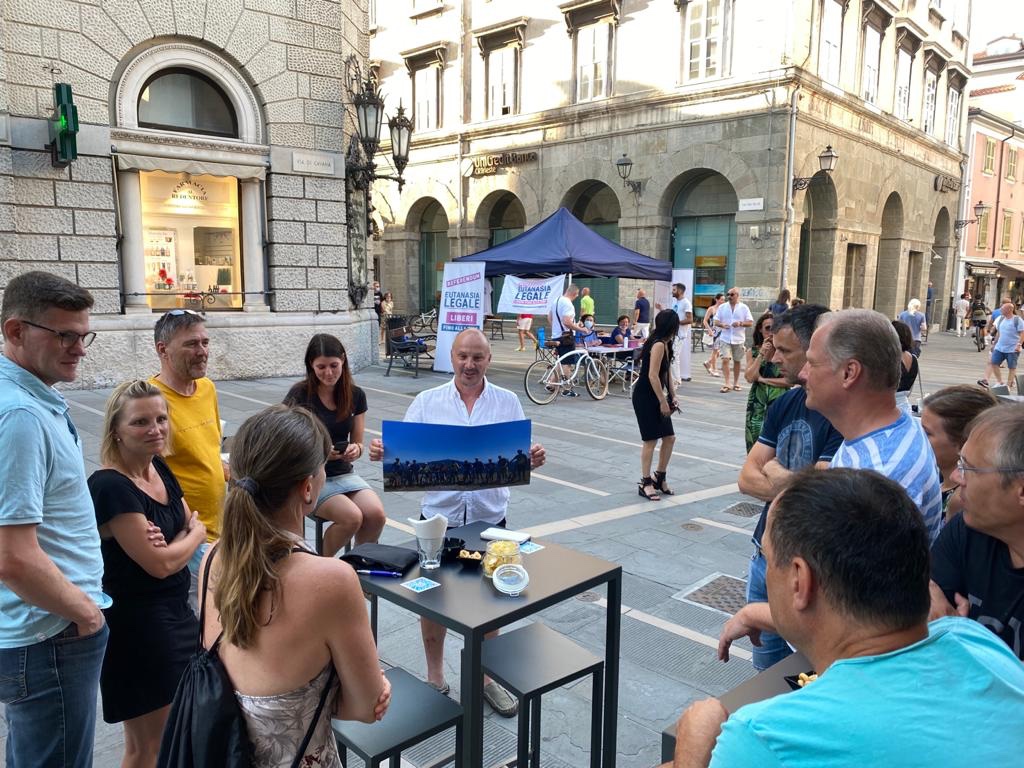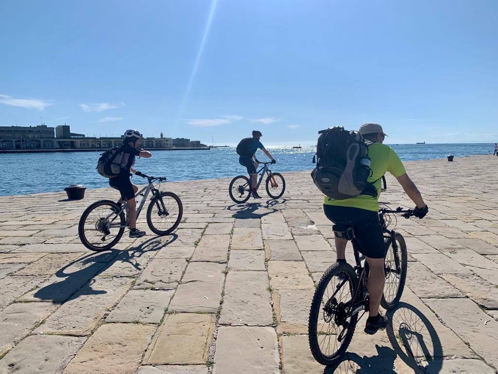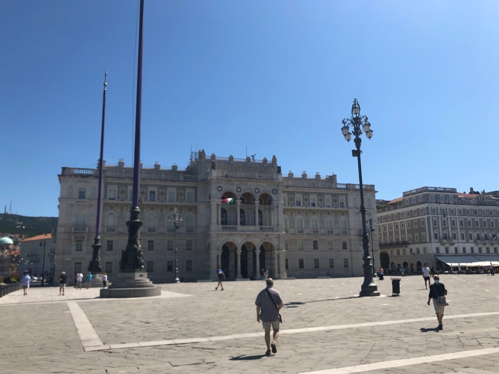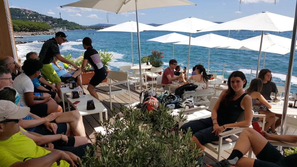 Das kommt nach einer kleinen Pause mit Focaccia und Cappuccino auch endlich in Blickweite, während wir weiter auf schönen Pisten durch Pinienwälder Richtung Triest rollen (oder auch „Trist“, wie ein angehender Tourguide einer anderen deutschen Truppe es genannt hatte).